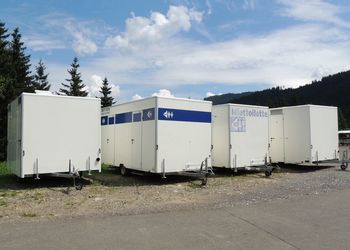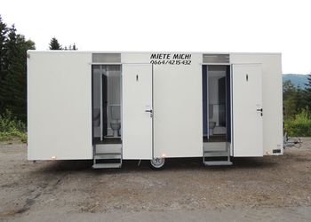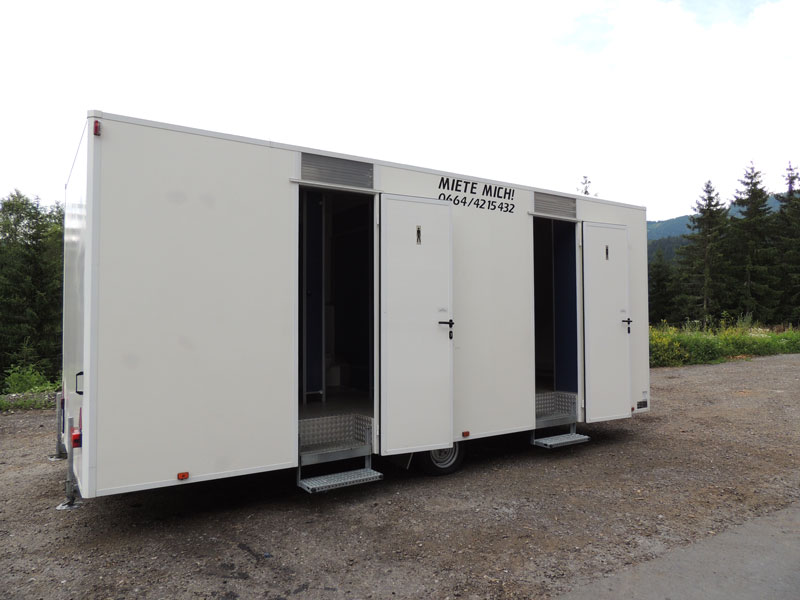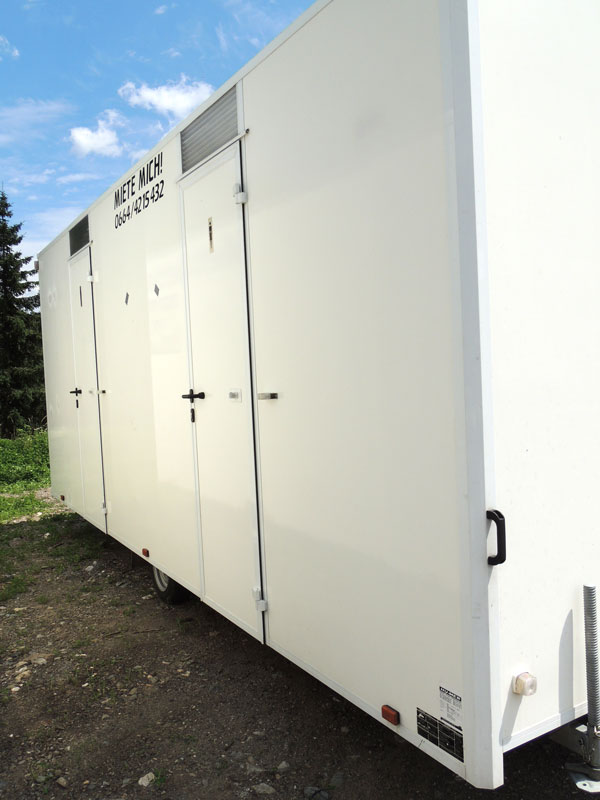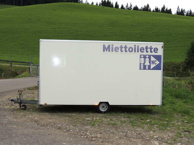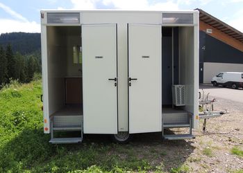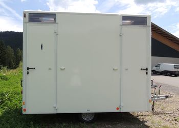 Auch bei den WC Anhängern vom „Franz Moser Schank & Eventservice“ haben Sie die Möglichkeit, den für Ihre Veranstaltung passenden WC Anhänger zu mieten.
